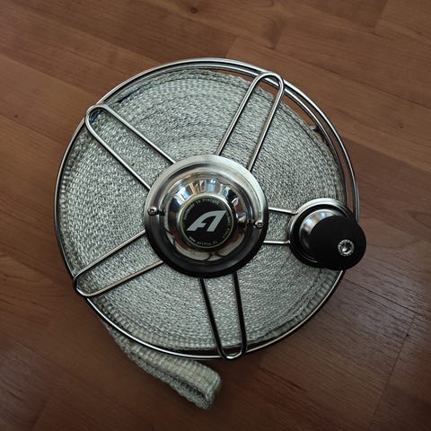 Uusi rst Arifin liinakela kaidekiinnityksellä , liina 2.5cm leveä , pituus 35m ,