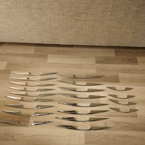 Kaappien vetimiä 18kpl. Ruuvien väli 10cm. Maksu käteisellä tai mobilepay. Kaikki yhteensä 8e, tai yksitellen 1e kpl.