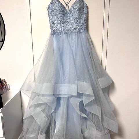 Myydään paljon haluttu Zazabellan Dazzling malliston mekko koossa XS. Itse olen 165cm pitkä ja mekko oli sopivan pituinen, ei mennyt vannehameen kanssa jalan alle mutta helma hipoi kuitenkin nätisti lattiaa. Kuvan mekko on värissä shampanja, jossakin valossa enemmän shampanja ja jossakin enemmän valkoinen. Viimeinen kuva on Zazabellan sivuilta, jossa sama mekko, mutta värissä blush.