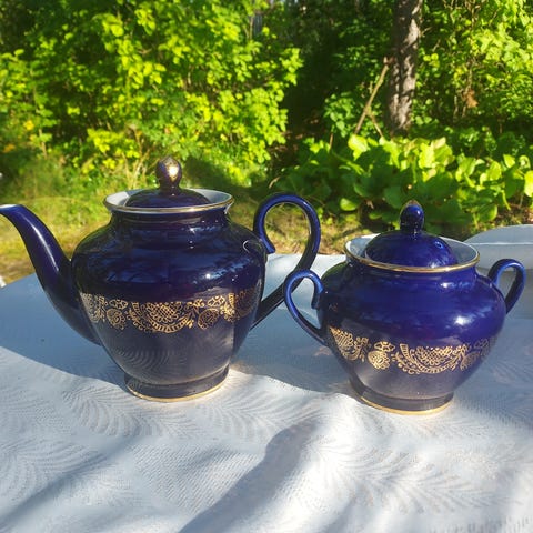 Upea teekannu kork.n.16cm. Pohjassa punainen leima USSR.