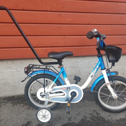Lasten polkupyörä 14 tuumanen. Ketjut rasvattu. Pyörän kumeihin lisätty ilmaa. Takakumi uusittava. Voimme tuoda lähialueille. Hinta/tarjous.