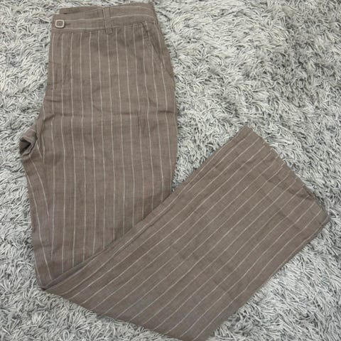 Pellavaiset rennon tyylikkäät ja silti juhlavat kesähousut. Vyötärö 90cm ja pituus vyötäröltä 84cm.