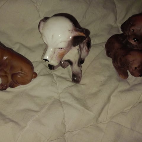 Pieni söpö koira-figuuri, vintage. Punainen rusetti edessä. Vaaleanruskea, valkea. Korkeus 5 cm, pituus 5 cm ja leveys 3 cm. Ehjä ja siisti. Postitus tai nouto.