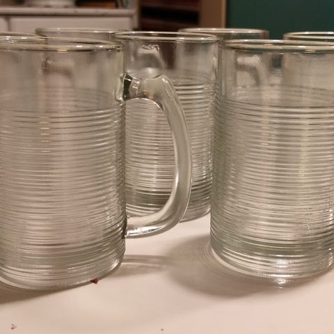 Vanhaa lasia olevat desimitat,toisen suuaukolla ja kahvassa pieniä lohmoja katso kuva,toisessa ei mainittavia vikoja!