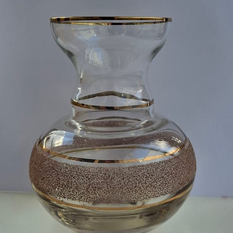 upeasti koristeltu maljakko, kultaa ja koristeita, korkeus n. 14.5 cm. ehjä. VAIN JA AINOASTAAN NOUTO. EI POSTITUSTA.