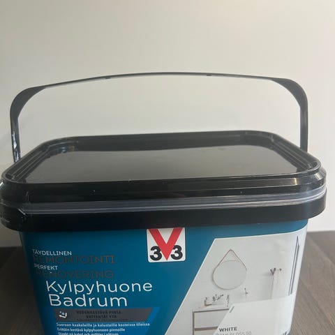 Esikäsittely aine sekä vaalean harmaa (dolphin grey) kaakelimaali kylppäriin/kosteasn tilaan.