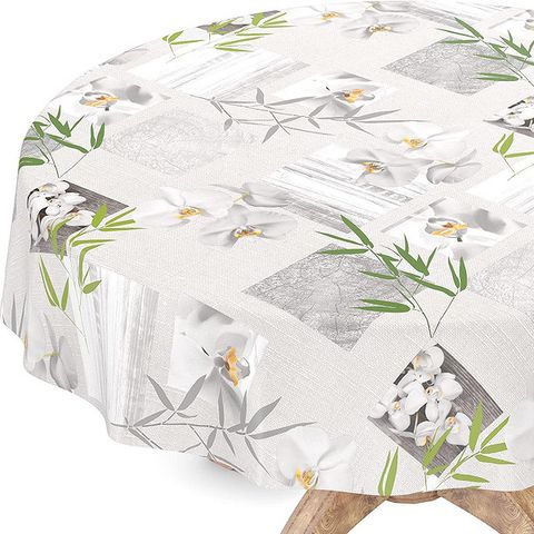 Pesunkestävä, helppohoitoinen pöytäliina, jossa on PVC-pinnoite ei-kudotussa kankaassa kuvioineen.