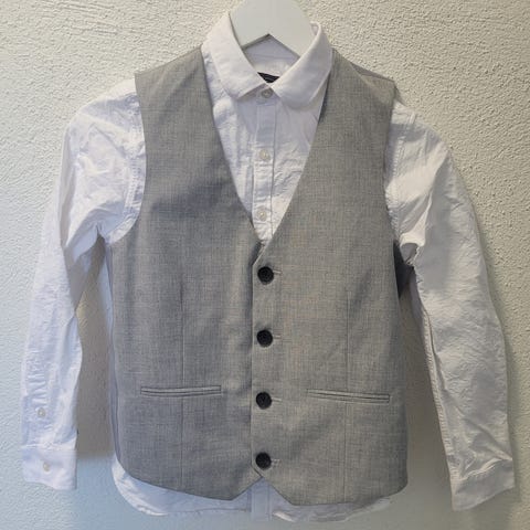 Vaaleanharmaa hyväkuntoinen kauluspaita. Ei lemmikkejä, eikä tuoksuja.