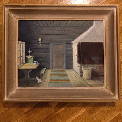 Arvid Lindin signeeraama öljyvärityö vuodelta 1928.