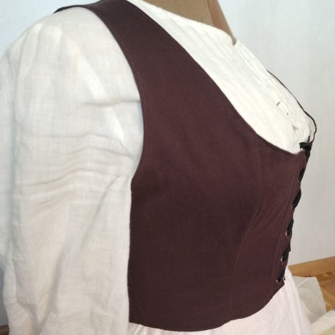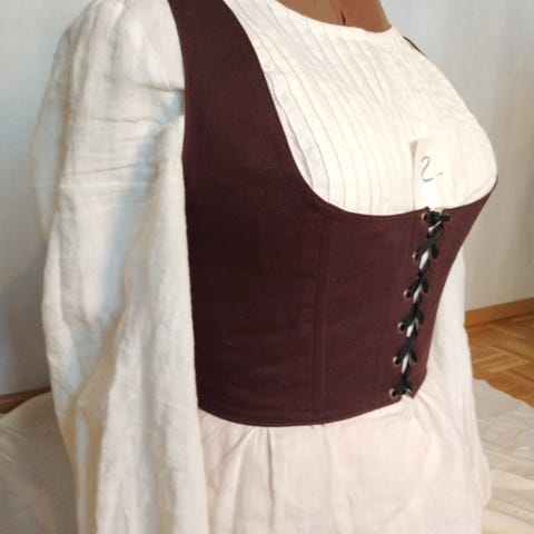 Hobbittien ja cottagecoren inspiroima liivi, "korsettitoppi". Vaatteen mitat alhaalla.