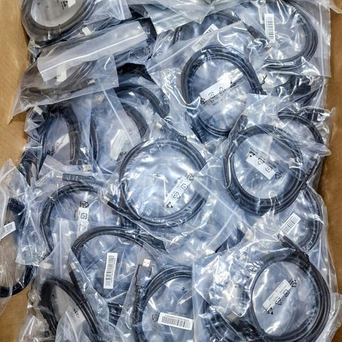 Kaapelit ovat käytettyjä ja hyväkuntoisia. Joissain saattaa näkyä pieniä käytön jälkiä. Kaikkia ei ole erikseen testattu, mutta suurin osa toimii moitteettomasti. Mukana voi olla eri näköisiä ja -mallisia kaapeleita.