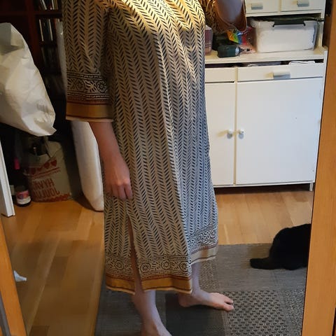 Kaunis uusi käyttämätön intian puuvillaa oleva mekko. Mielestäni noin kokoa 40. Kainalo-kainaloleveys on 48 cm.