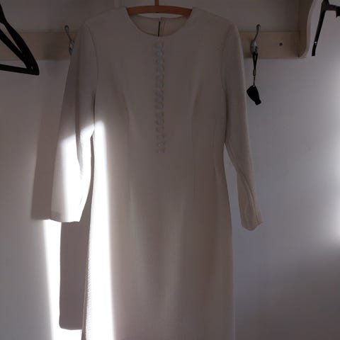 Tästä ihanan minimalistisen ja klassisen tyylikäs luonnonvalkoinen häämekko. Vain huntu puuttuu!