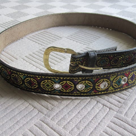 Ruskea vyö kultaisilla koristeilla ja soljella, 90 vm, hyvässä kunnossa