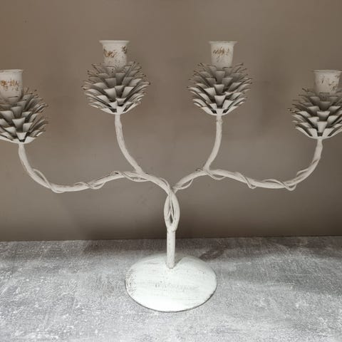 Koristeellinen metallinen kynttilänjalka.