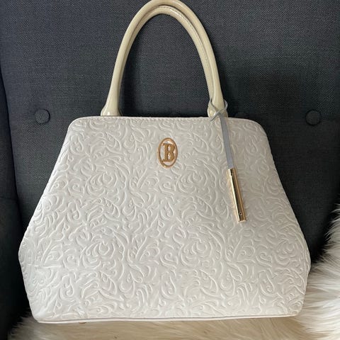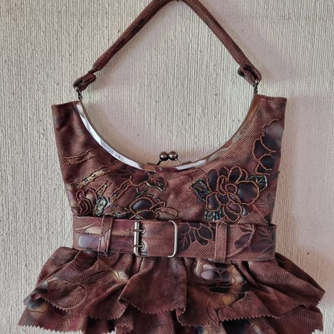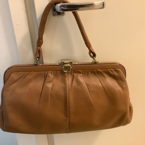 Harvinainen Vintage-laukku. Merkki Claudina. Valmistumaa Brasilia. Mustaa nahkaa. Malli pyöreähkö, pussukkamainen. Metallikaari toimii sulkimena ja siitä voi myös kantaa. Leveys 23 cm, korkeus 20 cm. Hihnana hopeanvärinen metalliketju, jonka pituus 54 cm. Mukana pieni irtopeili. Ei ole ollut käytössä.