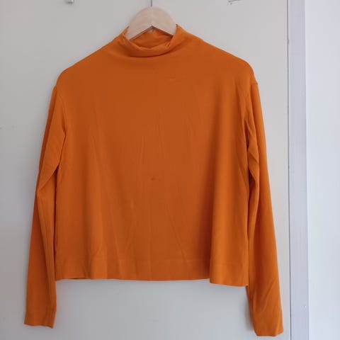 Harmaa oranssi Marimekon pusero, vene kaula-aukko.