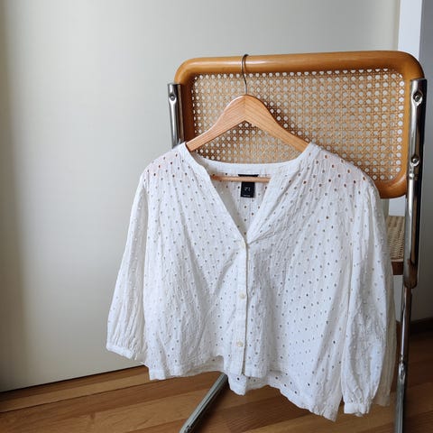 Valkoinen pitsi paita 10e. Tumma sininen Lindex paita selkä puolella trikoo kangas 4e