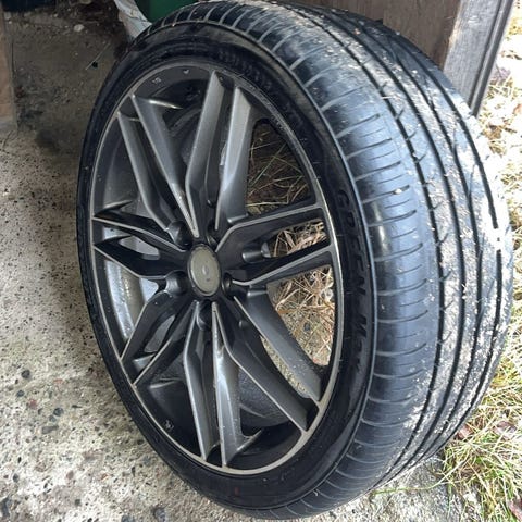 Audin alkuperäiset alumiinivanteet hankookin nastarenkailla. Parissa vanteessa kanttariosumaa, mutta suorat. Et 48
