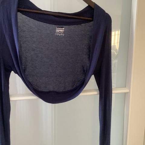 Musta bolero, hillitysti kiiltoa kudoksessa, 80% viskoosi, 20 % lurex. Vesipesu 40 astetta. 3/4 hihat. Pituus selässä 37 cm.