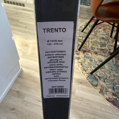 Myydään hyväkuntoinen sininen verhotanko. Tangon pituus säädettävissä 123-235cm.