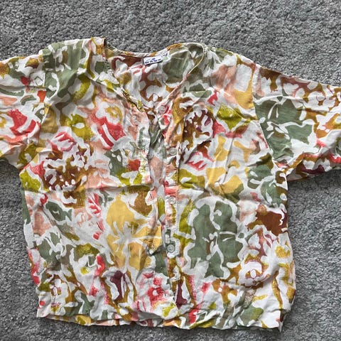 Tunikamallinen pusero, made in Finland. Kielo. 13 % villa, 83 % viskoosia. Vintage, ei käytössä ollut.