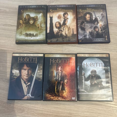 taru sormusten herrasta ja hobitit. 6 kpl elokuvia dvd:llä taru sormusten herrasta ja hobitit.