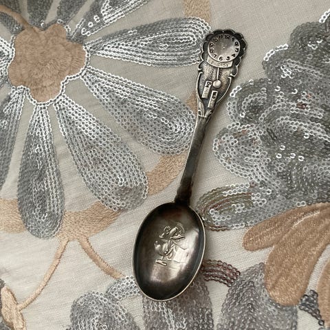 Hopeinen perunalusikka 1947