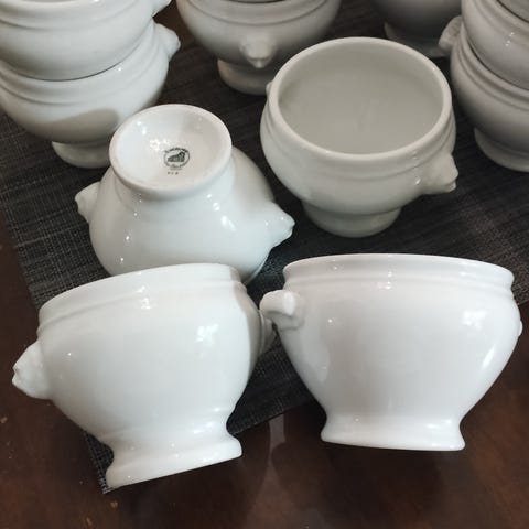 Eschenbach saksalaisen porsliinitehtaan vitivalkoinen täysin ehjä ja vain vähän käytetty suuri soppakulho on sulavaa muotoilua kaunista katsella. Korkeus nuppiin 22,4 cm ja suurin leveys 29,5 cm.