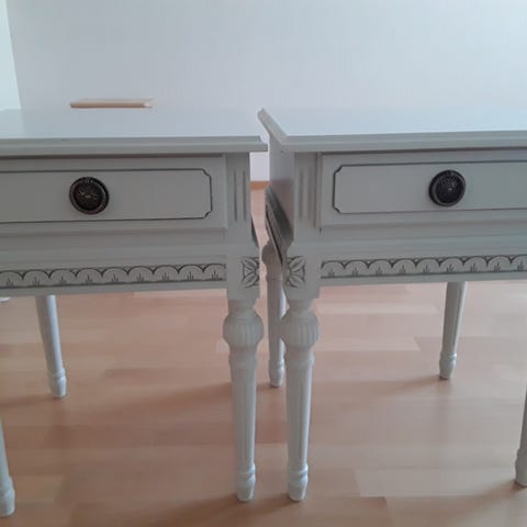 Korkeat Kustavi tyylin yöpöydät myytävänä. Valmistus arviolta 60/70-luku. Kolhua ja kuluneisuutta kauttaaltaan. Sisusta siisti eikä ole hajuja. Rungot tukevia. Myydään parina.