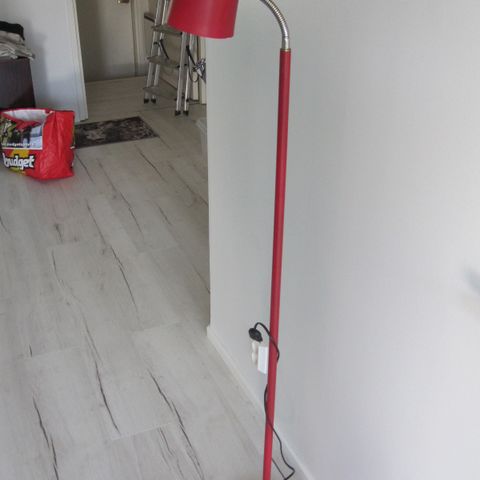 Kaunis vintage jalkalamppu (metalli, varjostin raakasilkkiä, painava…) koko korkeus 79 cm.