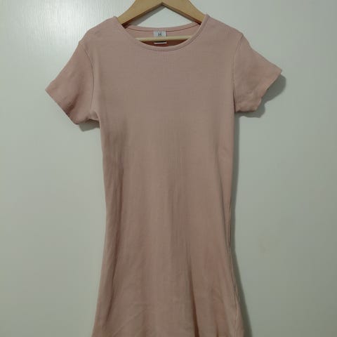 Alushame on mekossa. Pinta harsomaista kangasta. Olkaimet ja vyö.