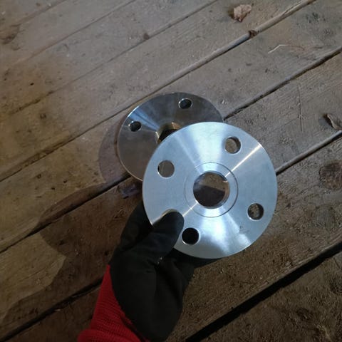 Kamiinan / kiukaan liitoslaippa. Halkaisija 115 mm putkelle. Putken pituus 20 cm. Laipan ulkohalkaisija 22 cm. Jäi ylimääräinen. Käyttämätön.
