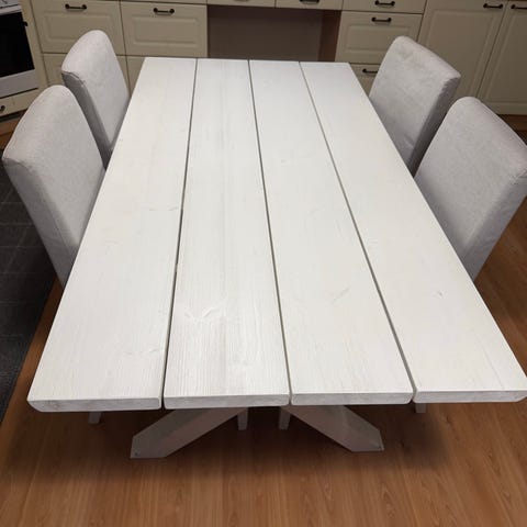 Todella tukeva lankkusohvapöytä. Tikkurilan kelo arcticilla käsitelty.