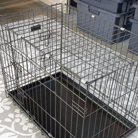 Metallinen häkki pienelle koiralle esim autoon. Pituus 60cm, leveys 44cm ja korkeus 53cm. Yhdellä pitkällä sivulla ja toisessa päädyssä ovi. Vain nouto