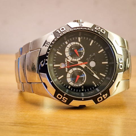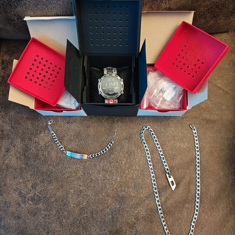 Kellotaulu siisti. Mukaan rannekkeen jatkopala.