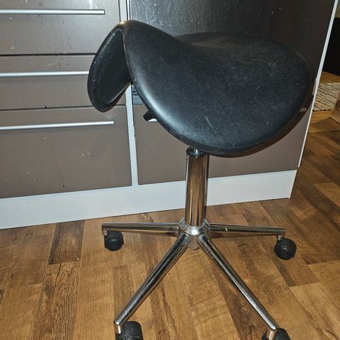 Vähän käytetty satulatuoli myydään tarpeettomana. Säädettävä, korkeus noin 50-75cm. Pyörät alla. Kankainen istuin, ehjä.