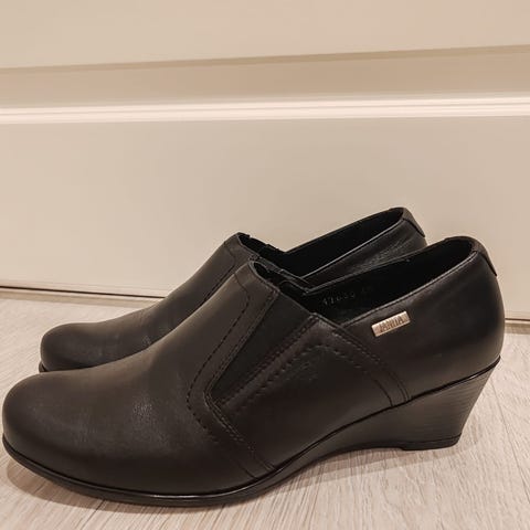 Kauniit Janitan kotimaiset musta/valkoiset nilkkurit. Koko 40. Pitävät kumipohjat.