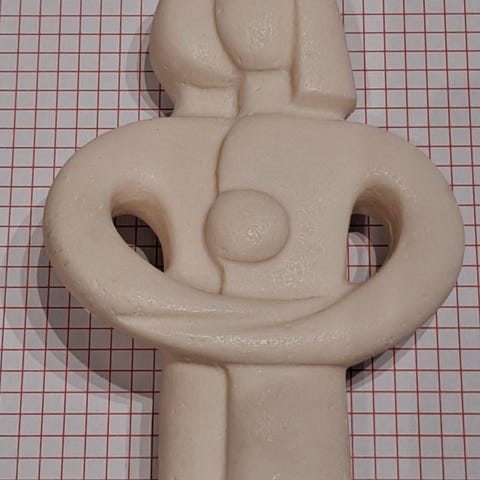 Vihreää vuolukiveä oleva poika-hahmo kukkakoria kantaen tummalla vuolukivijalustalla. Korkeus noin 10,5 cm ja jalustan leveys noin 3,5 cm. Miel. nouto, mutta kulkeutuu omien menojen mukaan Tampereen seudulla.