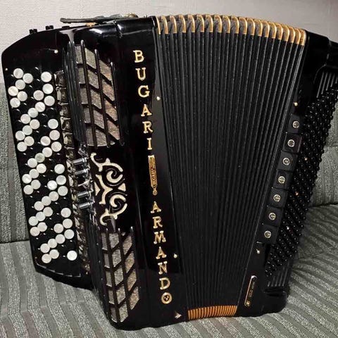 Bugari 4-äänikertainen, hyvässä kunnossa oleva haitari. Huollettu, viritetty ja tiivis. Tiiveys tarkastettu vasta ammattilaisen toimesta. Mukaan kova laukku, ei keikkailtu. Tätä on moni testaaja kehunut hyväksi peliksi.