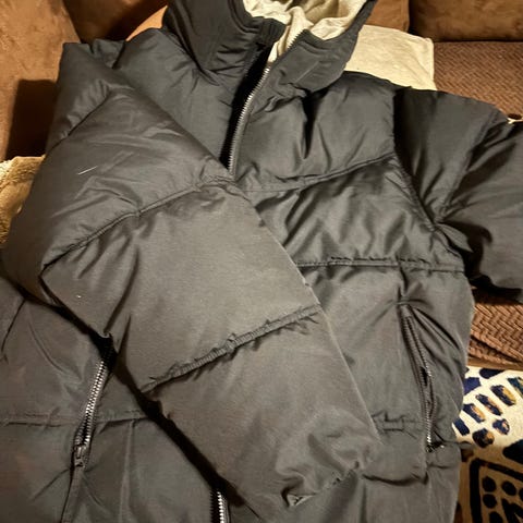 Mukava ja tyylikäs muhkutakki Hollisterilta. Viininpunainen takki tuo väriä tavallisten mustien takkien sijasta. Takki ilmoittaa kookseen XL, mutta todellisuudessa L-kokoa.