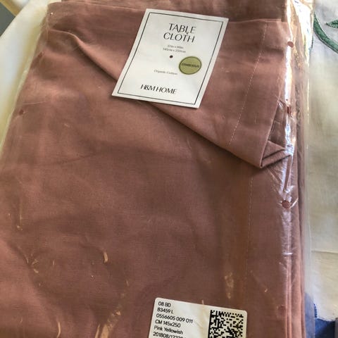 HM Home -pöytäliina. Puuvillaa, musta kuvio, pohjaväri vaalea beige. Uusi, koko 140 x 240 cm. Nouto Espoosta.