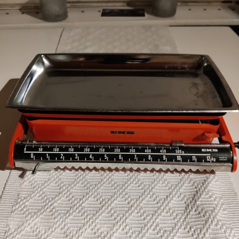 Marianne merkkinen, vintage keittiövaaka. Toimiva ja ajan patina näkyy somasti.