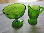 Vihreät lasiset kermanekka ja sokerikko. Valmistajasta ei merkintää.