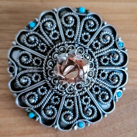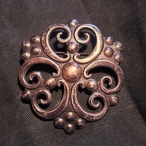 Antiikkikoru Hopeinen rintakoru klipsikiinnitys