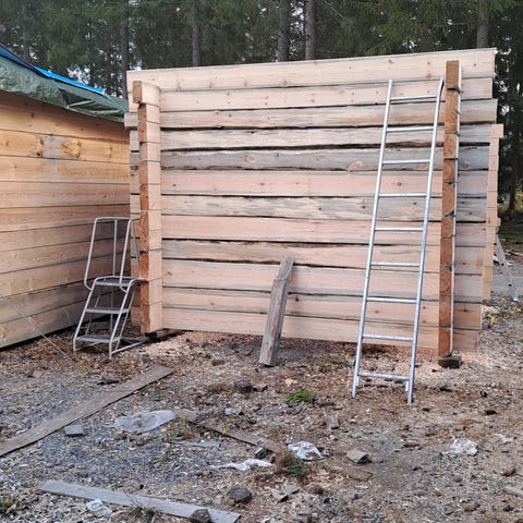 Hirsikehikko savusaunaksi, saunaksi tai aitaksi. Koko 2,45m x 2,45m, korkeus 2,8m ja eteen saa n. 2m katetun kuistin. Hirsi 4 x 8". Kattovasat kuuluu. Ulkopinta valtattu. Kuljetus kokonaisena. Paino n. 1500kg