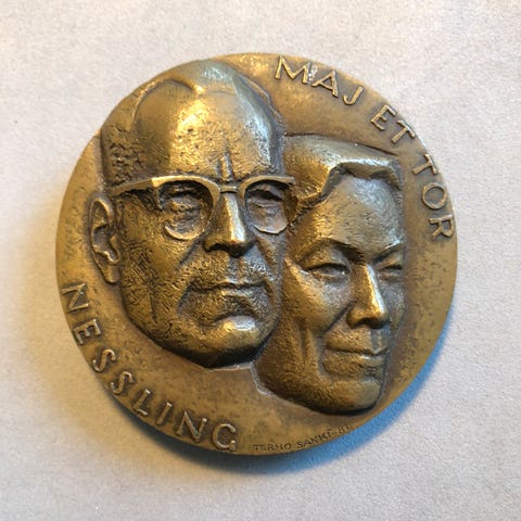Tässä on myynnissä pronssinen taidemitali.