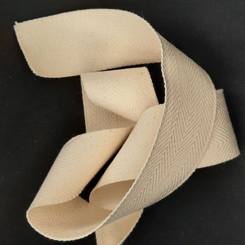 Rulla luonnonvalkoista puuvillanauhaa, 30 m, leveys 25 mm. Ompeluun, käsitöihin, askarteluun