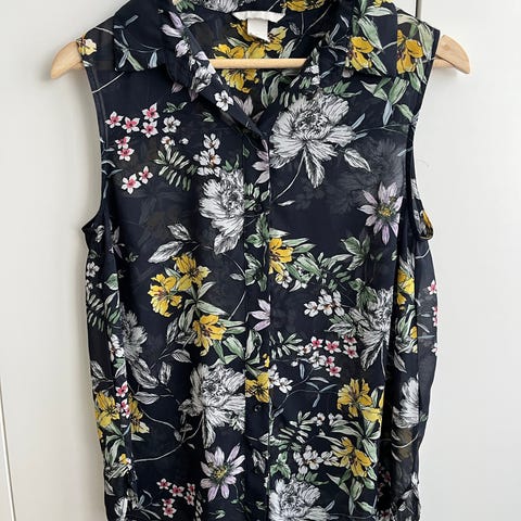 Valkoinen kukallinen paita jossa joustava pääntie.