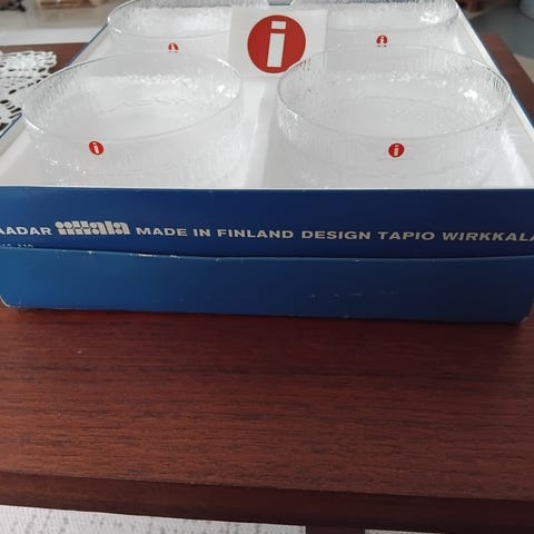 Iittala Padaar Tapio Wirkkalan suunnittelema. Tuotanto v. 1970-81. Iso tarjoilukulho halk.18cm, kork.7,5cm. Reunassa 1x1mm kokoinen pykälä?valusauma? tai ns. "kirpunpurema", ei halkeamaa tai säröä(kuva) 30€. Jälkiruokakulhot 6kpl 4,5x11cm.10€/kpl. Täysin virheettömät. Voit myös tarjota. Nouto Hki Siltamäki. Kulkeutuu omien menojen mukana Hki etukäteen maksettaessa.